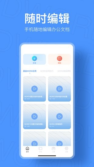word文档表格编辑支持word、excel等文档在线实时编辑,您可以将手机的word文档导入文档表格编辑方便文件管理,也可以新建word、excel进行在线文档编辑制作,可以保存文件,实现高效移动办公