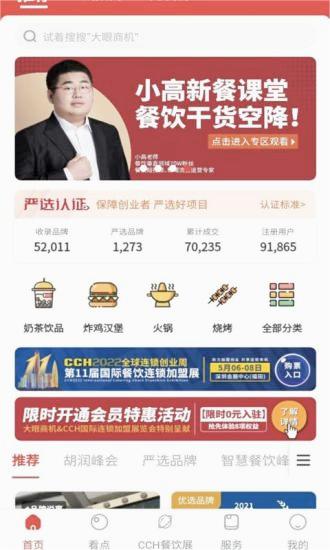 大眼商机APP是一个专为餐饮行业创业者打造的服务平台。它为用户提供了丰富的餐饮行业资讯,让创业者能够快速获取行业动态和加盟信息。通过该应用,用户可以在线了解加盟项目,获取专业的知识,为自己的创业之路提供有力的支持。线上的信息了更加的方便快来下载看看吧!