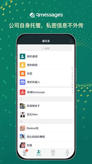 qmessages官方版是非常实用的办公平台,用户下载app之后就可以在手机端随时随地开启办公模式,丰富的交流考勤功能可以满足大家的日常使用需求,干净简洁的画面带给大家最好的办公体验,欢迎有需要的用户下载qmessages app看看吧。