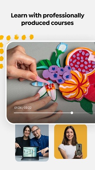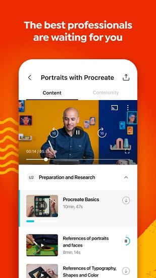 探索所有不同的创意类别并找到完美的课程。在线观看视频或下载视频以随时随地观看,即使您没有连接到互联网。选择音频和字幕的语言(提供葡萄牙语、英语、西班牙语、德语、法语、意大利语、波兰语和荷兰语)。参与课程社区并查看其他学生的项目。创建列表以保存课程以供以后使用。