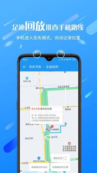 可以在地图上实时查看孩子的位置,让您一目了然的知道他的所在位置,其行程路线,可以在历史足迹中查看。