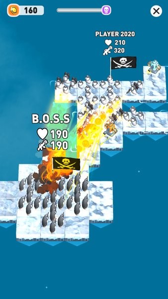 通过从冲浪筏上捡起小企鹅群来扩大您的小队,他们将成为您小队的一部分,以赢得这场筏战。你的军队越大,你赢得这场木筏海战的机会就越大。点击并射击你的敌人以获得奖励和积分来升级你的木筏和角色。在这场疯狂的新顶级木筏战争游戏中幸存下来,永远不要停止射击。你还在等什么?立即免费下载我们的企鹅筏之战,开始战斗吧。如果您喜欢我们的游戏,请将您的反馈分享到评论部分,以便我们改进我们的游戏击球手和击球手。谢谢