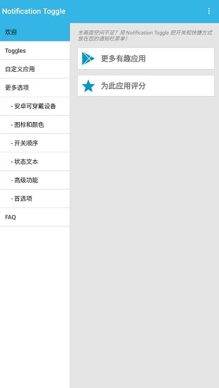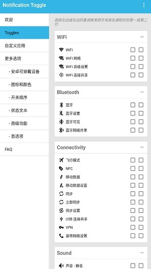软件可以进行各种便捷开关的通知栏放置,并且还有更加详细的快捷选项,中文的说明让你的体验更进一步!