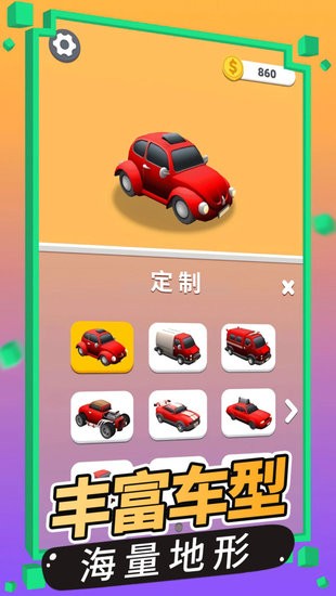 3、奇趣闯关挑战,精美的汽车模型和场景构造。