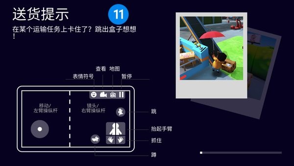 1、控制一个橡皮人物在游戏中送快递,沙雕欢乐,玩法充满趣味性。