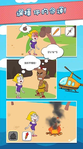 1.别上当受骗!每一关都有多项选择题,选择正确的答案继续游戏。选错答案会给女孩带来很痛苦却很滑稽的后果!