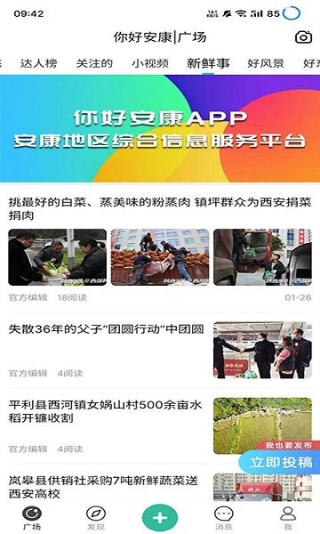 你好安康app给安康生活居民打造的本地资讯服务软件,通过软件用户可以了解到丰富的资讯,可以进行同城相亲,同城招聘,房屋,二手车等相关的交易信息,非常的便利居民生活,快来下载试试吧!