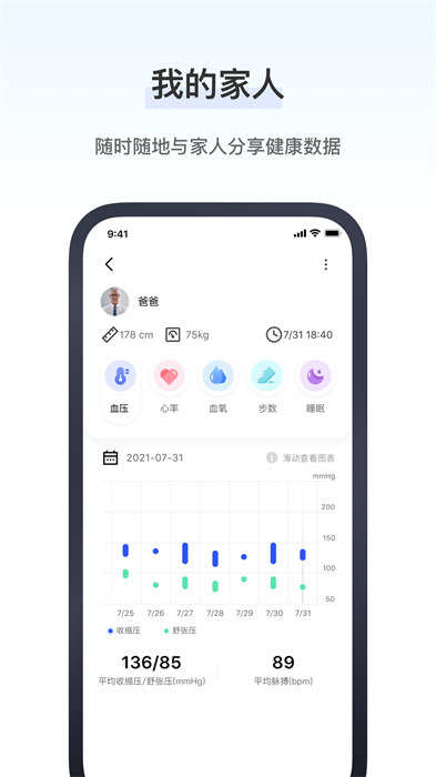 可以定期或每天定期检测人体的血压数据,让用户直接了解自己的血压状况