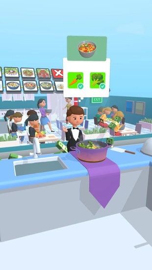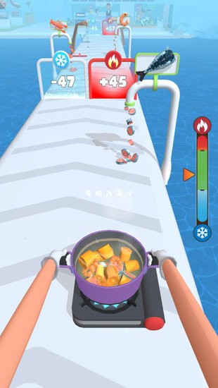 在游戏中玩家作为一名餐馆的厨师,需要收集各种各样的食材,再通过道路上的温度控制来烹饪料理,通过不断拾起地面上需要食材,来提高美食的完成度,不同的食材对于温度的控制更是需要把控清楚,在玩家的屏幕右边有着一条进度条,玩家可以通过判断这个进度条来分辨食材是否需要添加和加热,尽情的来打造你的餐馆吧,提高你的知名度。