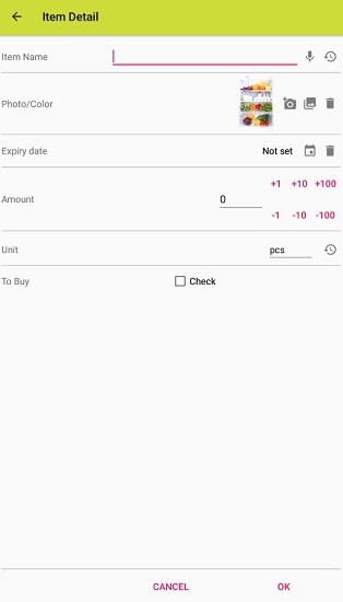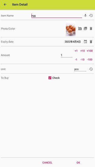 您可以为每件商品设置最佳使用日期或有效期。一目了然,您可以查看卡片中显示的剩余天数。也可以设置闹钟。