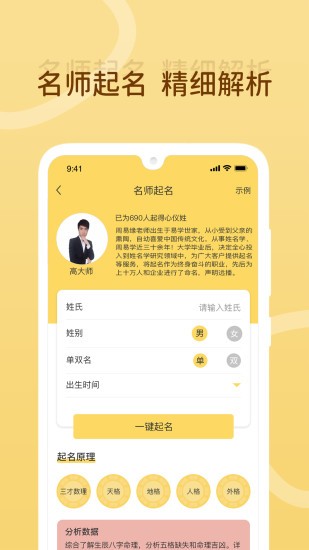 专业名师在线起名,深耕姓名学潜心研究,以三才数理,生肖五行为基,并结合诗经楚辞、唐诗宋词等国学经典起名,让您的宝宝名字也能寓意深刻,底蕴深厚。