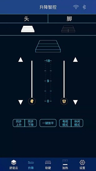 1、在线可以自由智能控制床的升降、软硬调节、床垫加热。