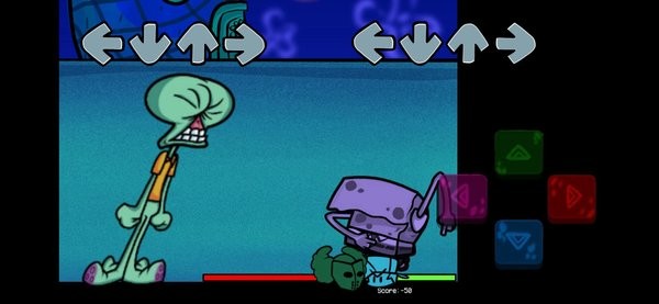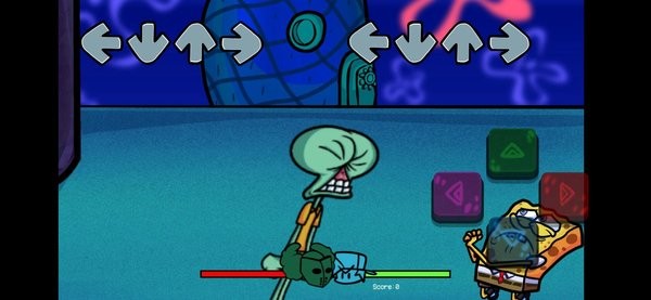 章鱼哥大战海绵宝宝手游(fnf 比其堡之战)让大家可以在游戏中享受不一样的精彩音乐体验,是周五夜放克的一个海绵宝宝模组,章鱼哥和海绵宝宝在比奇堡中激烈战斗,节奏感十足的音乐由你来挑战!