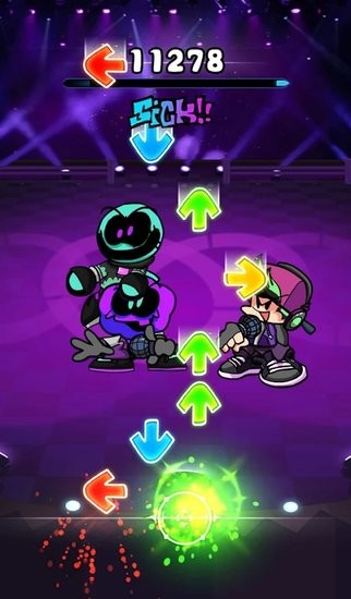 黑色星期五之夜流行节拍采用了竖屏模式,让大家单手就能掌控游戏进行操作,在开始之前可以选择不同的难度模式,玩家通关之后就能解锁更多新的角色进行挑战,包括烟神、索尼克、腐化小黑等等,玩法内容十分丰富。