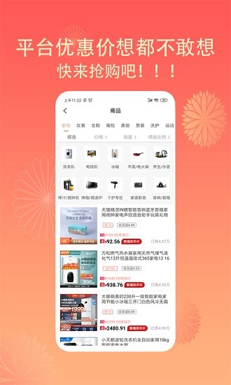 3、每日参与超低价抢手机/数码/美妆/视频会员年卡等热门商品!