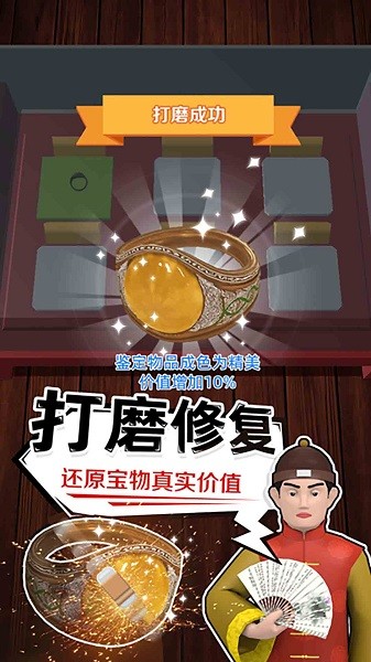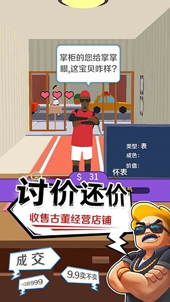 采用的是Q版卡通的画风设计,每一位人物看起来十分可爱,拥有丰富而又精彩的故事剧情,以及多样的有价值的文物古玩、珠宝钻石、收藏品,玩家需要以超低的价格回收顾客的物品,然后自己精心打磨物品转手高价卖给其他顾客,从而赚取其中的差价。