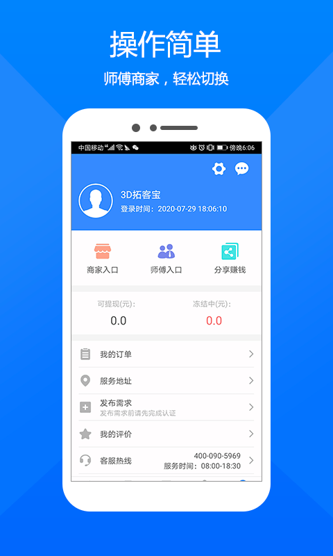 连接商家和消费者,为广大消费者提供优质的居家上门服务的功能,内容包括商家入驻、师傅入驻、服务内容发布、需求大厅内寻找服务项目等功能。