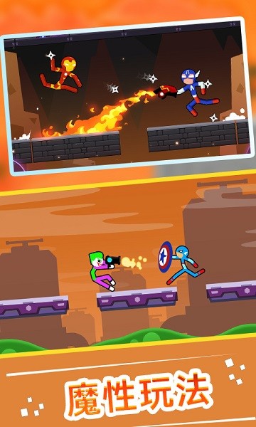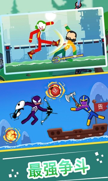 3.让玩家在享受精彩格斗大作战的同时体验一种全新的游戏挑战,每个火柴人角色都非常有趣。