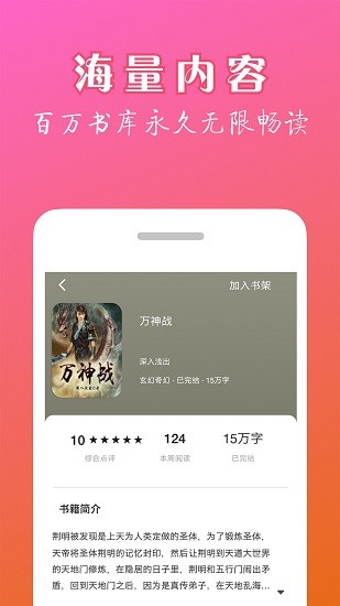 1.智能推荐,懂你的我们为您推荐喜欢的小说,再无书荒烦恼。
