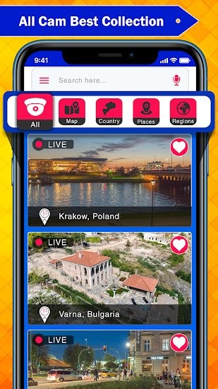 地球相机在线(Earth Camera)让用户可以随时查看全球的公共摄像头,通过软件可以观看全球的景色,让用户足不出户就可以旅行全球,还有可以观看视频当地的天气预报。