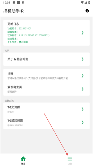 1、打开搞机助手R应用,点击界面底部的功能选项,进入功能页面。