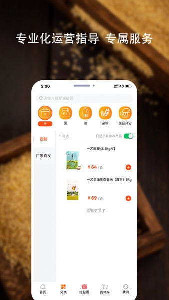 4.作为粮油配套交易平台,为每一位购买者提供更低的价格、更高性价比的粮油产品和贴心便捷的服务。
