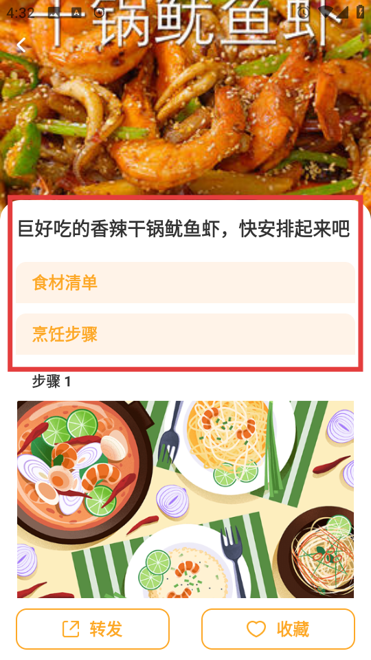4、在菜谱详情页查看食材清单和烹饪步骤等制作信息。