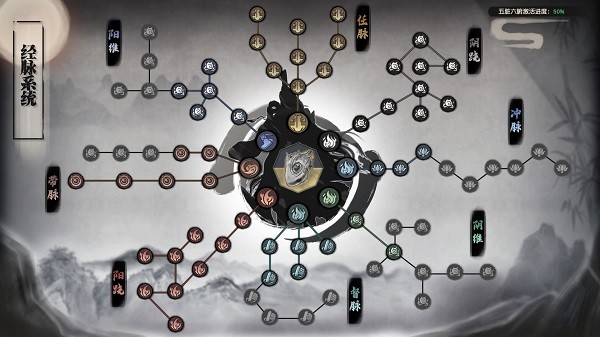 经脉和五行八卦结合形成的独特的经脉养成体系;