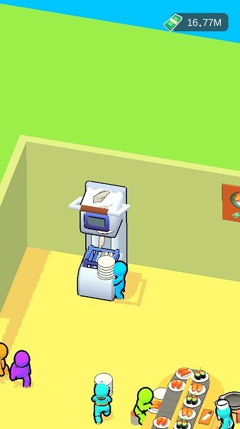 我的寿司酒吧是一个简约风格的经营手游,游戏中的小人都是橡皮人形象,玩家需要安排它们去不同岗位上工作,帮助你制作出美味的寿司,从而赚到更多钱,根据不同顾客的需求来为它们提供餐品,随着等级提升菜单也会更加丰富。