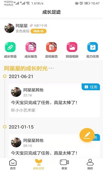 1、帮助家长高效的管理孩子,在手机上就能实时了解孩子的情况。