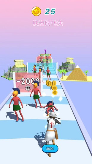 以人类进化为主题的休闲跑酷小游戏,控制人物移动,在赛道上通过增加对应年限使人类从石器时代不断的进化到到机甲时代,最后通过进化的时代程度而获得不同的奖励。