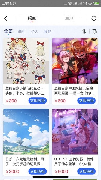c、平台进行约画操作都是非常的容易简单, 还可以按价出售,画师都在这里聚集;