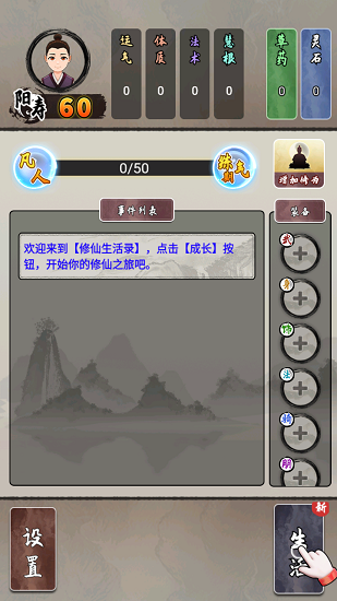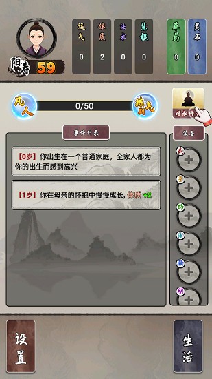 1、一款放置修仙小游戏,游戏开局选择你的出身,无比惬意;