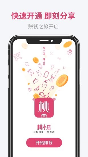 桃小店是一款轻松创业赚钱的应用,开通成为桃小店店主后,即可开启赚钱之旅。