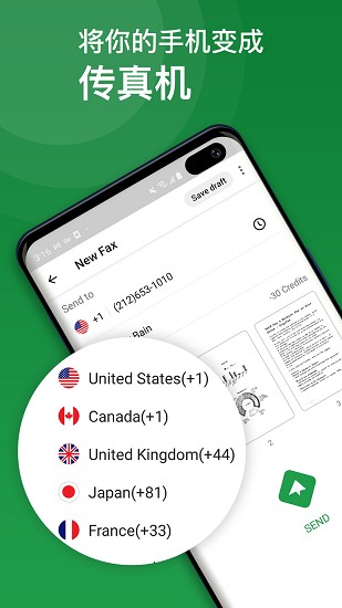 -能够发送传真给全世界好几个国家或地域