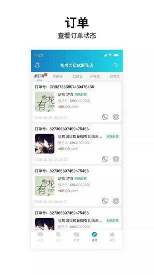 3、进行订单管理时,在app内即可查看外卖订单,快速掌握订单详情。
