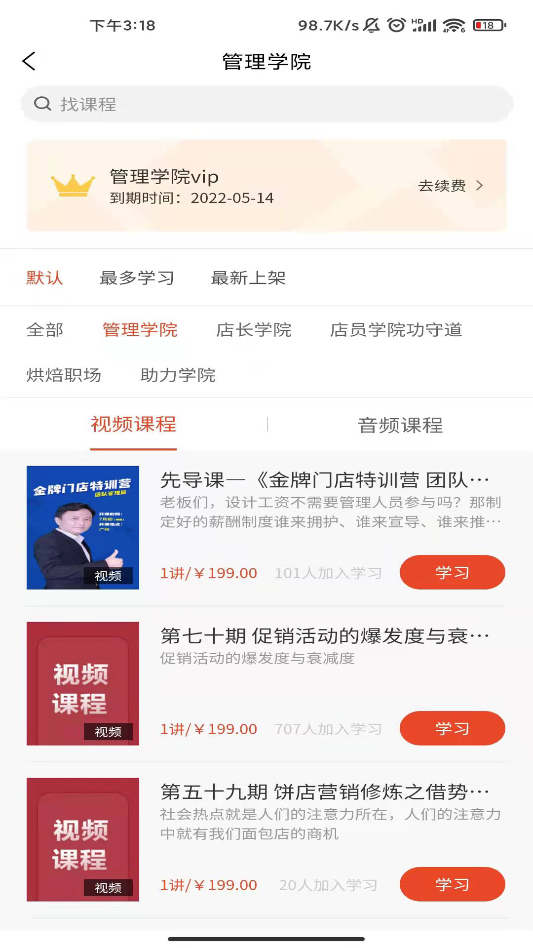 学院模块2.0:专为烘焙行业提供经营管理及烘焙技术的学习平台