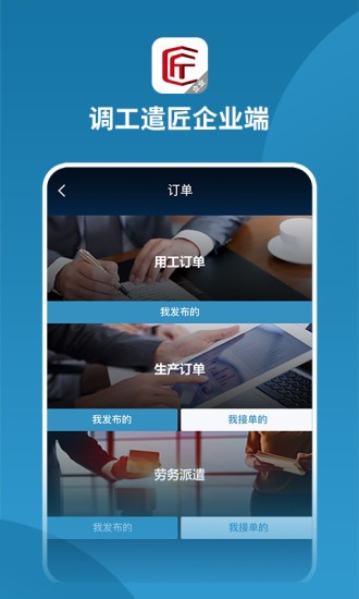 调工遣匠企业版专门为各大企业打造的一站式派遣管理平台,线上拥有多项功能,让企业可以在线寻找各项技术人才,根据分类来进行详细的招工。这里也能帮助企业进行产品采购,各种各样的工业品任你选择。线上可还以随时管理派遣的订单,欢迎有需要的朋友下载使用!