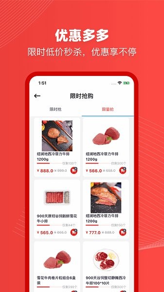 纽澜地软件是提供关于牛肉产品销售的一个线上购物平台,在商城里用户可以看到牛肉丸、牛肉卷、牛肉饼、鲜牛肉等不同产品,丰富的种类可以满足你的购物需求,同时还提供了其他生鲜,有采购需求的朋友可以来看看哦。