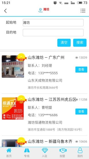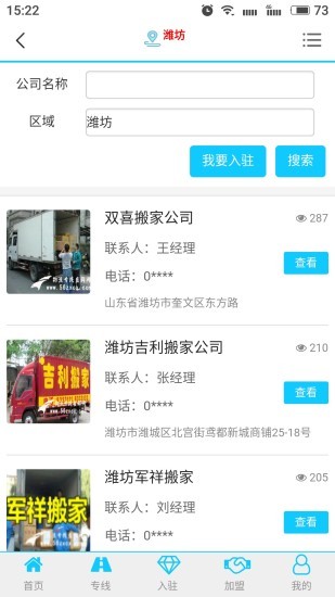 鹰智物流网在这里可以找到各种各样的物流公司,物流公司可以入驻到平台上发布自己的信息,而货主们也能在这里发布自己的货运信息,双方可以在线进行沟通,彼此促成长期的合作。线上的信息都是实时更新的,你也可以通过定位查找公司,欢迎有需要的朋友下载使用!
