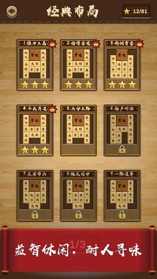 5.经典华容道玩法,再度为你呈现,发挥你的聪明才智,帮助曹操逃脱。
