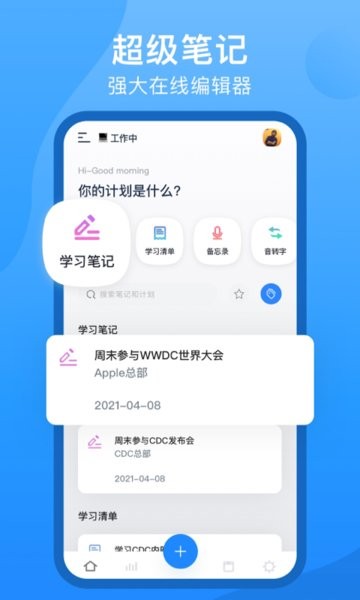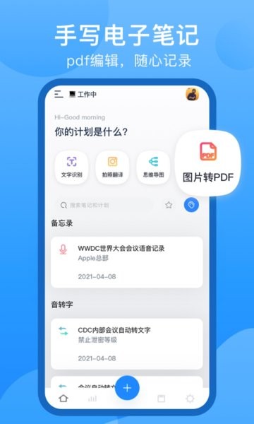collanote笔记让工作更高效:支持扫描、语音速记、时光轴笔记、时间轴记事本、日历视图、待办打卡、思维导图、图片转pdf!