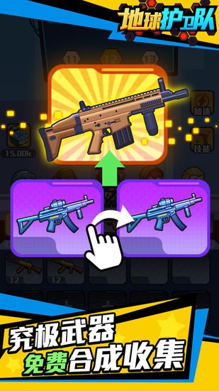 《地球护卫队》是一款全新的防守射击类游戏,游戏加入了合成玩法,让玩家能够有机会体验数十种经典武器,更有黄金加特林等你来拿!游戏画面精致,操作简单易上手,丰富的系统和玩法绝对会让玩家爱不释手,赶快来体验一下吧!