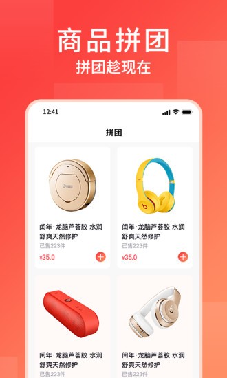 用户参与购物拼团即可获得红包奖励;更有机会成为幸运儿,以超低的价格买到精美的商品。