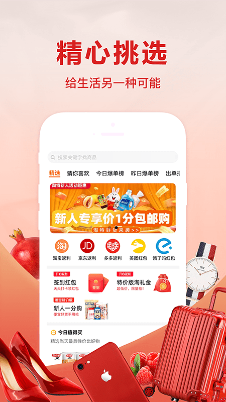 开心返利app是一款非常不错的购物平台,平台上有非常多的商品种类提供给用户进行挑选查看,都是为用户精心挑选的,让用户能够买到最优惠的商品,购买还能进行返利,让您能够一省在省,为您提供购物的乐趣。