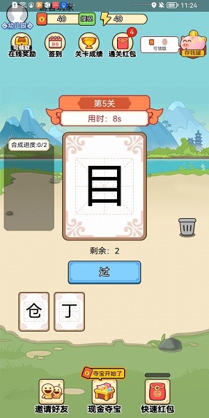 汉字大比拼最新版能让你尽情体验到汉字魅力的一个趣味教育类小游戏,在规定时间内将汉字组合完成即可过关,游戏提供了多种关卡,让你在游戏过程中也能不断积累汉字知识,感兴趣的朋友不要错过啦!