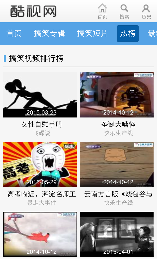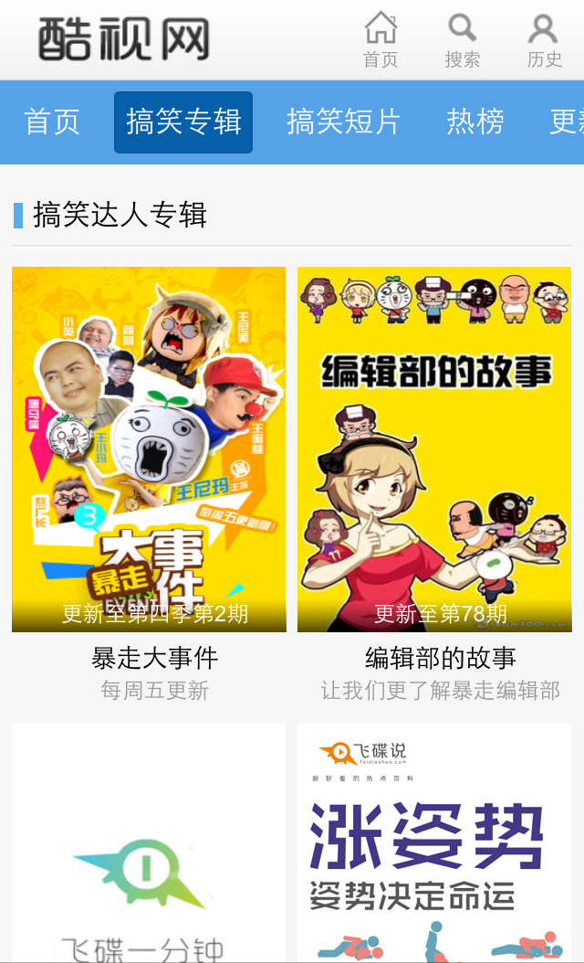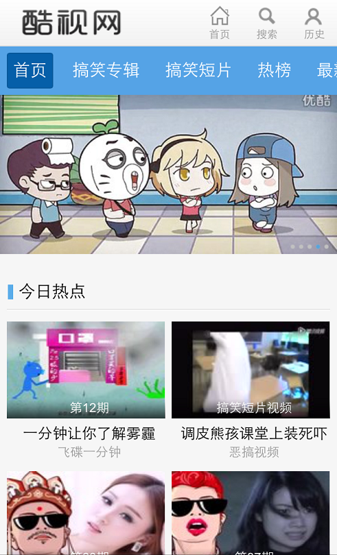 酷视网是一款视频影音类手机软件,里面精选全球搞笑视频,分为搞笑专辑、搞笑短片和排行榜等栏目,并且实时更新,让你第一时间领略那些令人捧腹的视频,一个人观看可以赶走忧伤,一群人观看,让大家乐开怀,喜爱的朋友赶快下载体验吧!