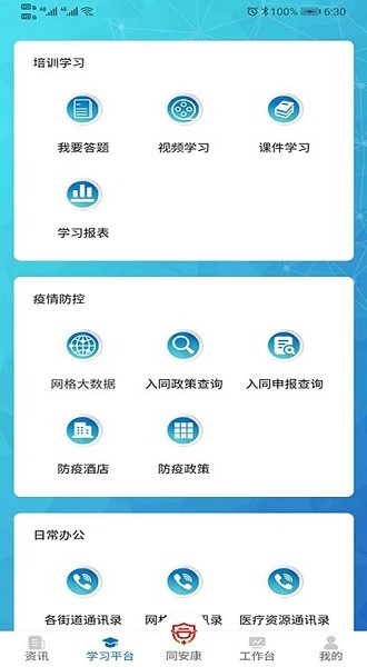 “同安康”信息资讯发布,基于“同安康”信息平台,构建数据采集统一入口,建立疫情防控数据自下而上报告和流转机制,网格员、企业等通过“同安康”信息平台,建立人员台账、单位台账和物资台账。
