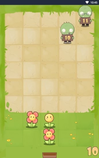 在这款游戏中玩家可以体验到有趣的植物对战僵尸闯关挑战,游戏分为上下两方,上方会不断冲出僵尸,而下方玩家则是可以放置一些小花击打僵尸,僵尸会抱着一个带有数字的牌子,这个牌子会表现出自己的血量,游戏对于新手十分友好,简单不失趣味性。