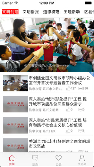 文明嘉兴app是一款以嘉兴文明新闻为主的一款手机阅读软件。里面的新闻都是有关嘉兴文明的新闻,在里面你只要注册账号就可以看到有关嘉兴的一系列的报道,,并且有多个板块的分类,如文明播报,道德模范,主题活动等,看到你喜欢的或者重要的新闻也可以分享到空间,qq,微博或者朋友圈,跟你好朋友一起分享。